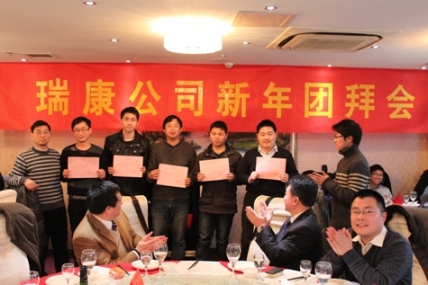 2013年1月底,公司2012年團拜聚會在南京萬家歡酒店隆重舉行,全國各地的瑞康同仁齊聚一堂,總結了12年的工作成就,共同展望公司的美好未來。期間,表彰和嘉獎了公司表現(xiàn)突出的部門和員工,并頒發(fā)了2011和2012年瑞康初級工程師證書。